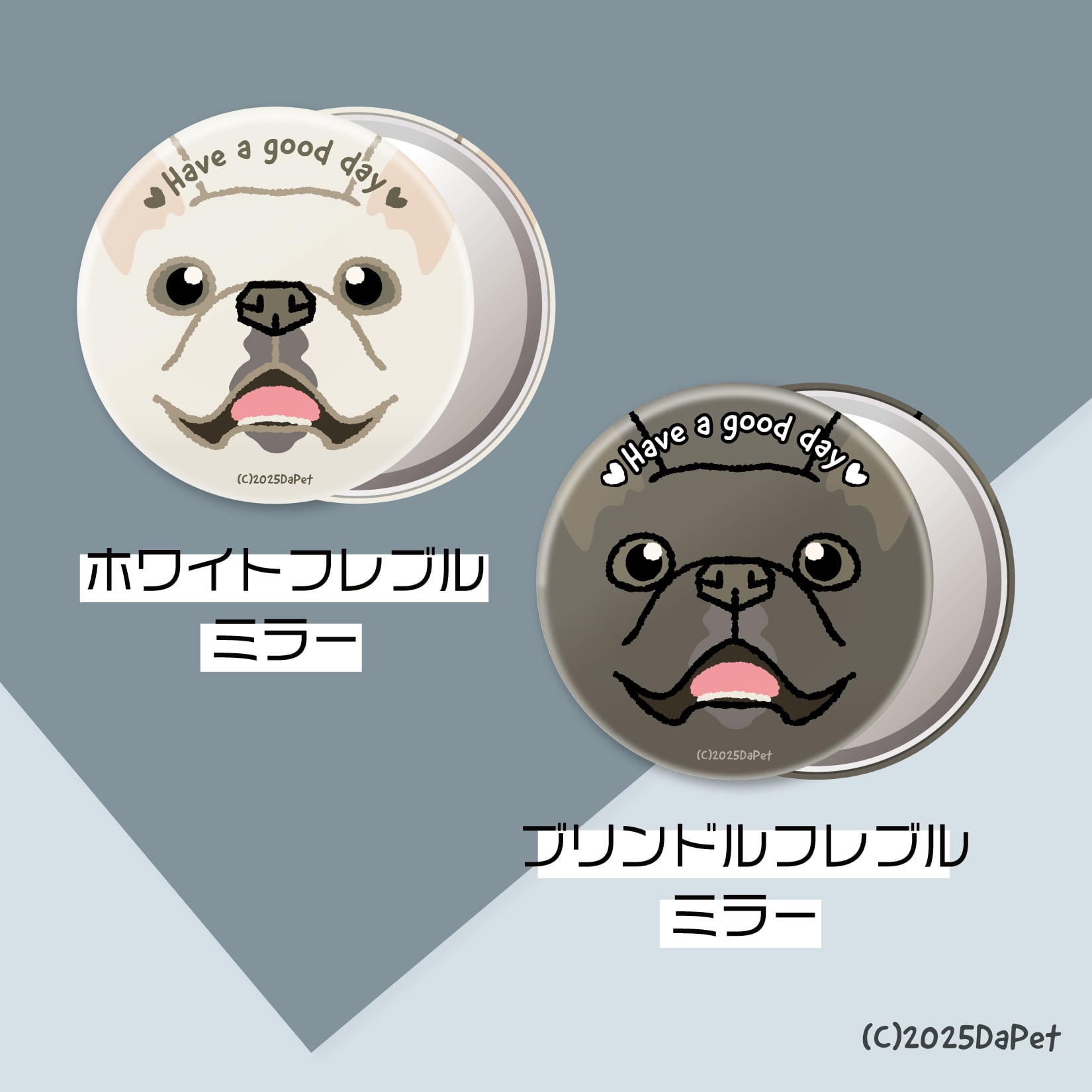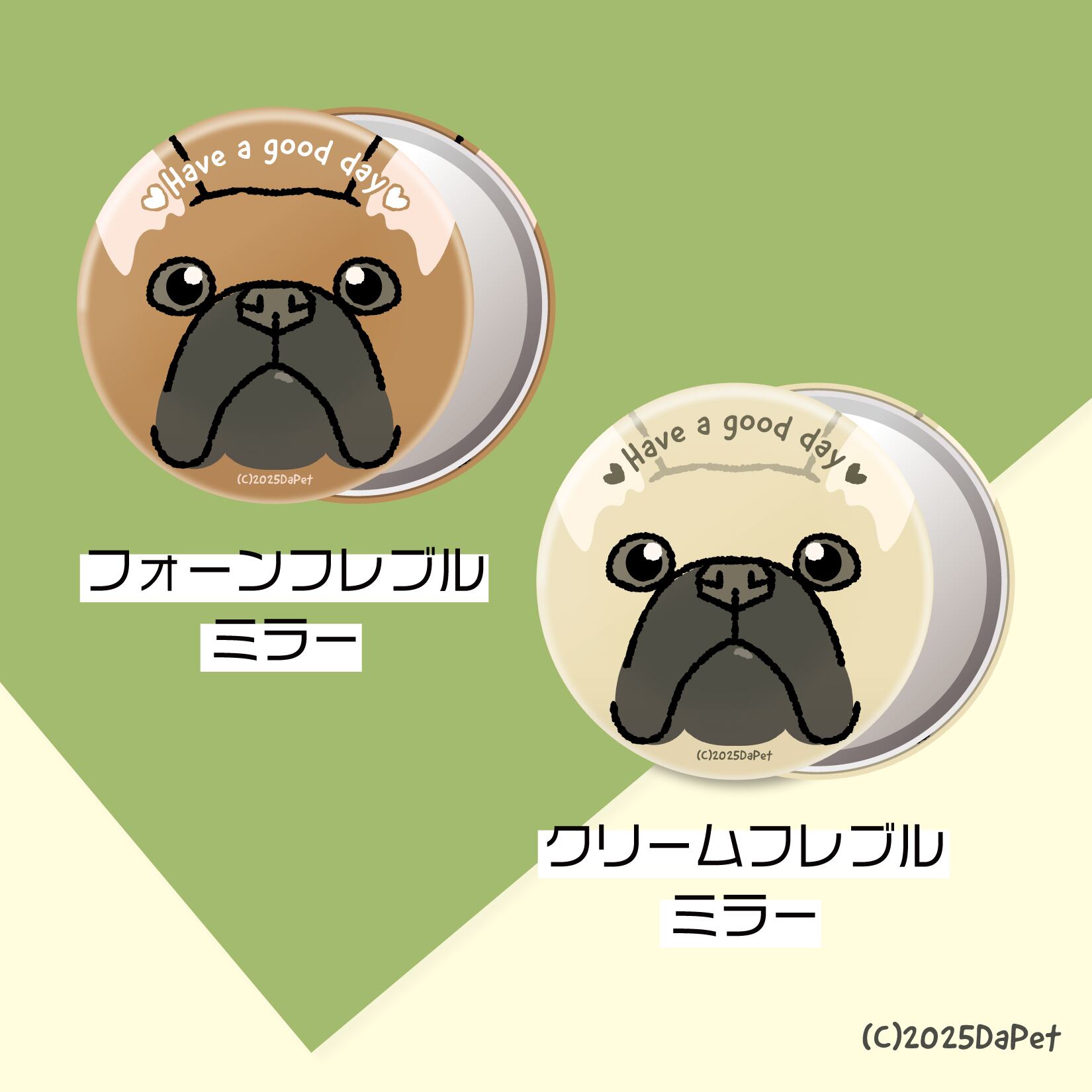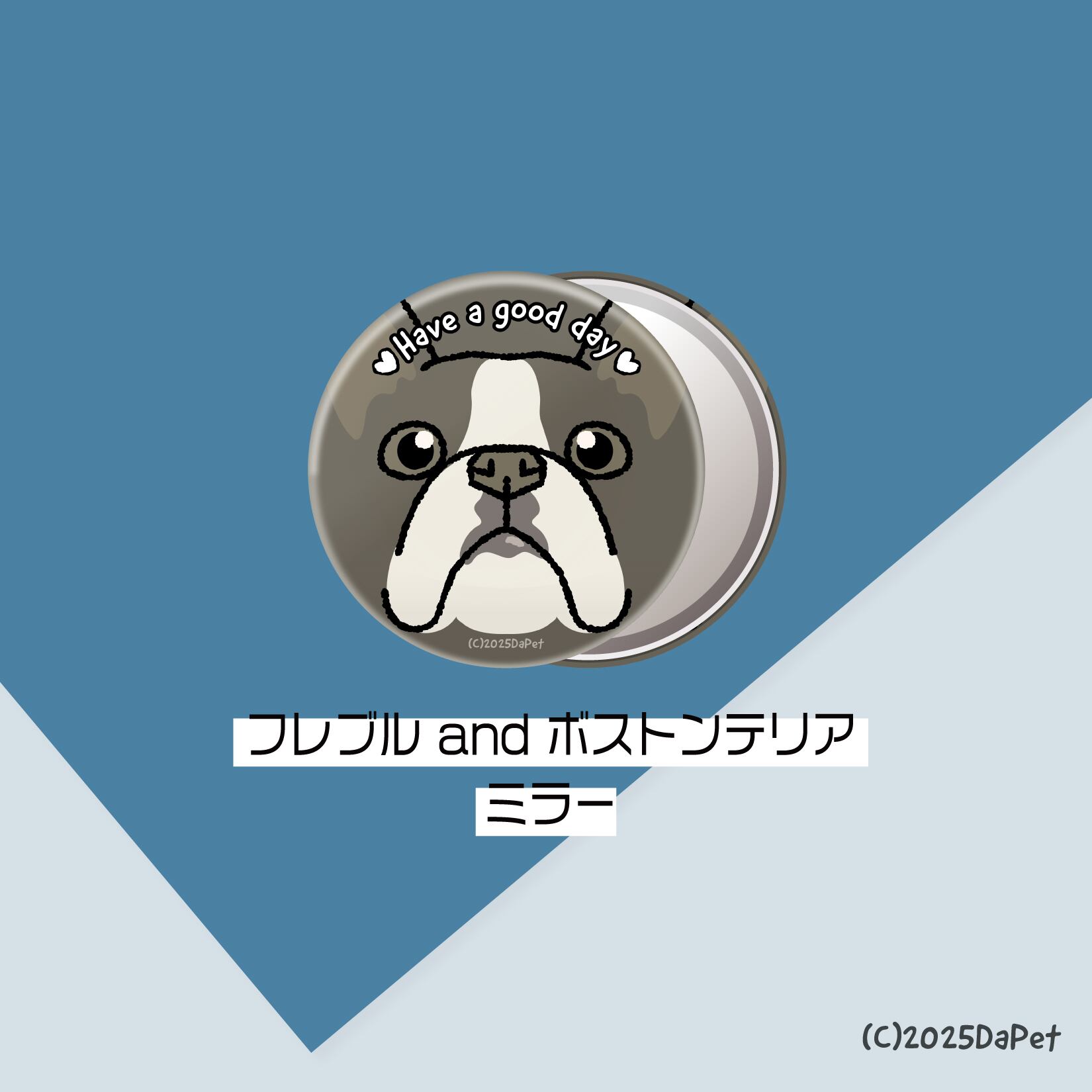 缶ミラー フレブル & ボストンテリア「Have a good day」
