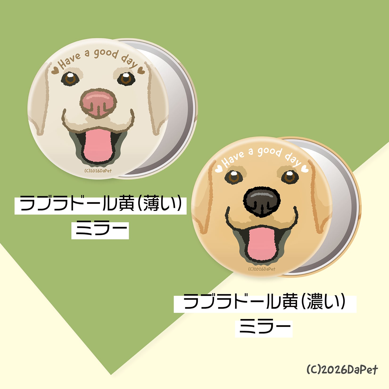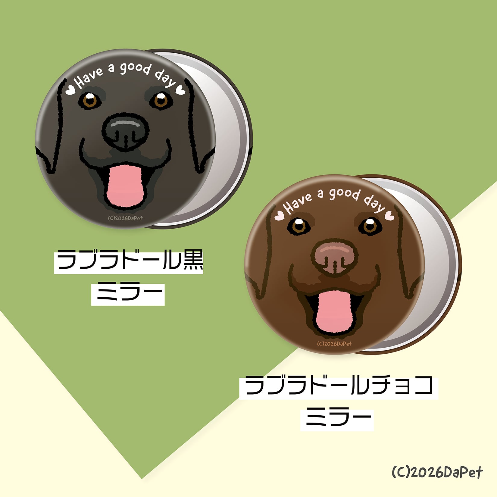 ラブラドールレトリバーイラストの裏面はガラス製ミラーです。