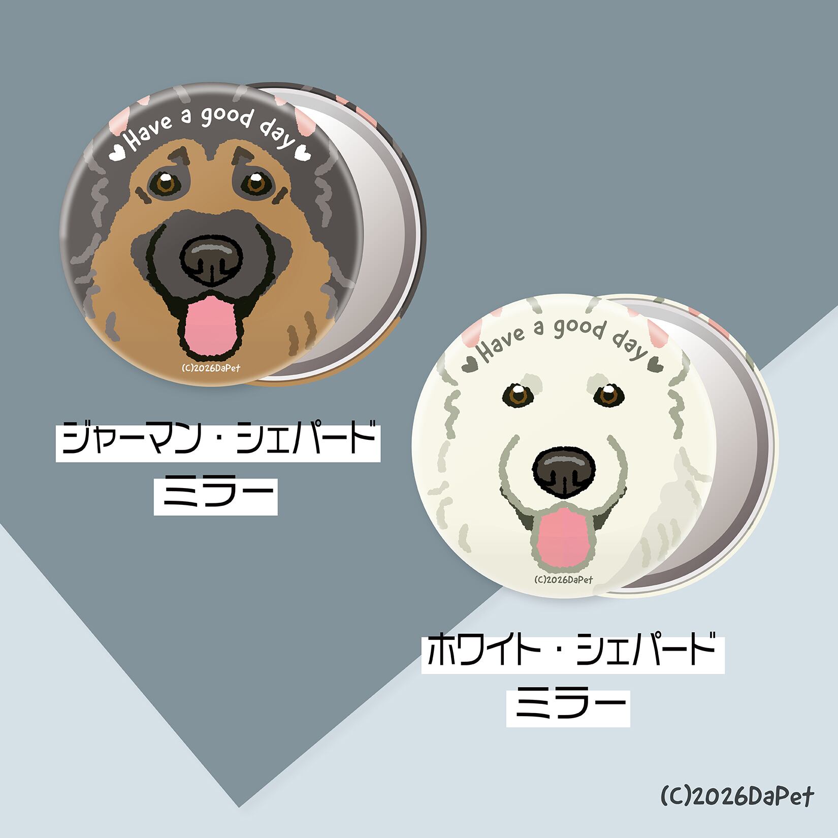 シェパードイラストの裏面はガラス製ミラーです。