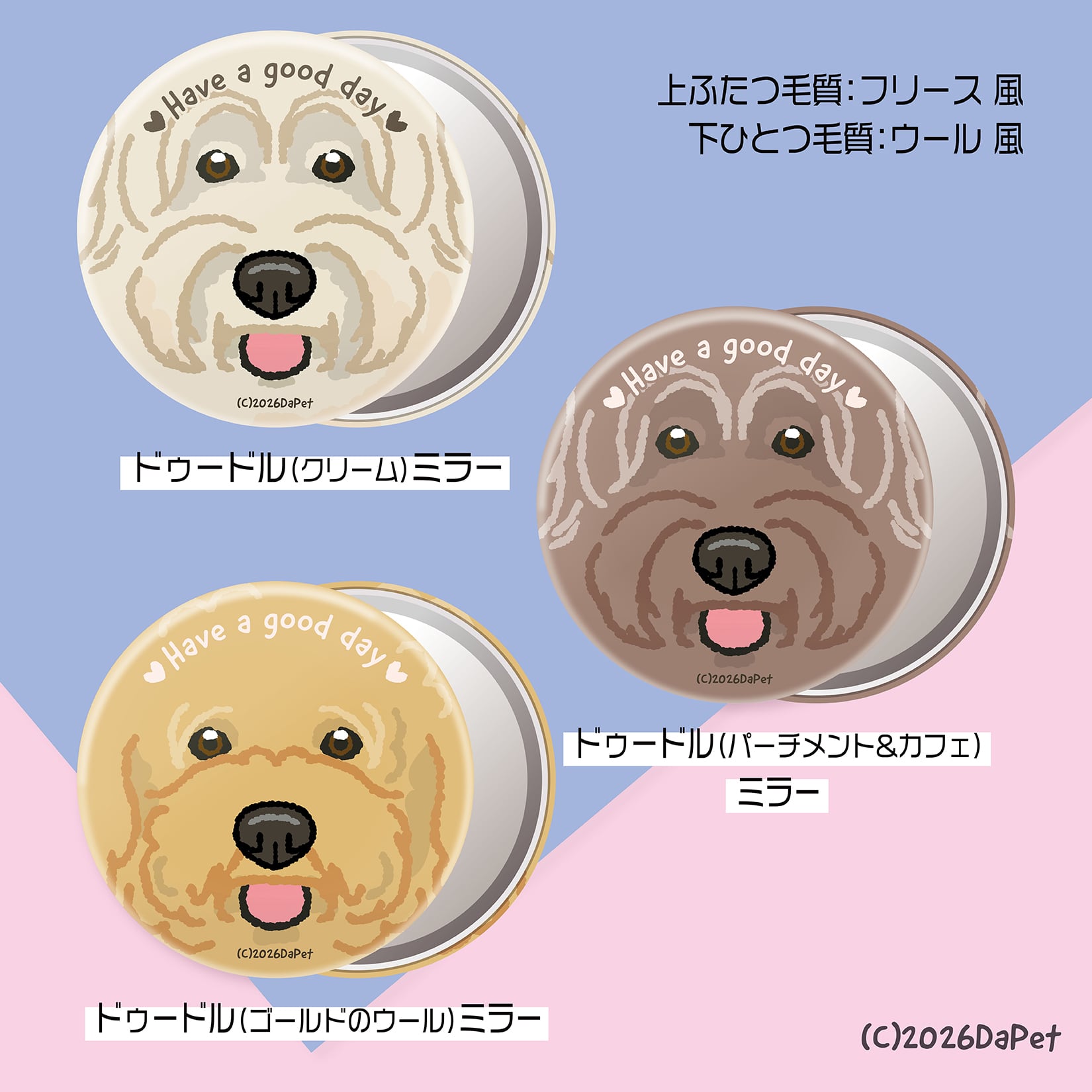 ドゥードルイラストの裏面はガラス製ミラーです。