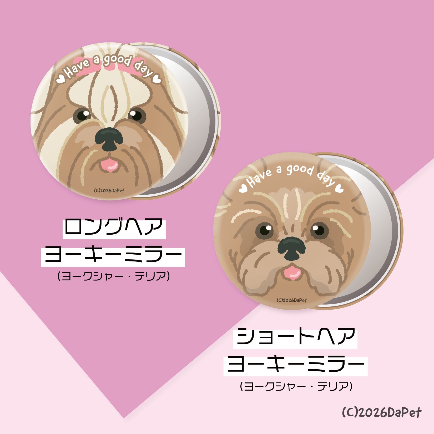 ヨーキーイラストの裏面はガラス製ミラーです。
